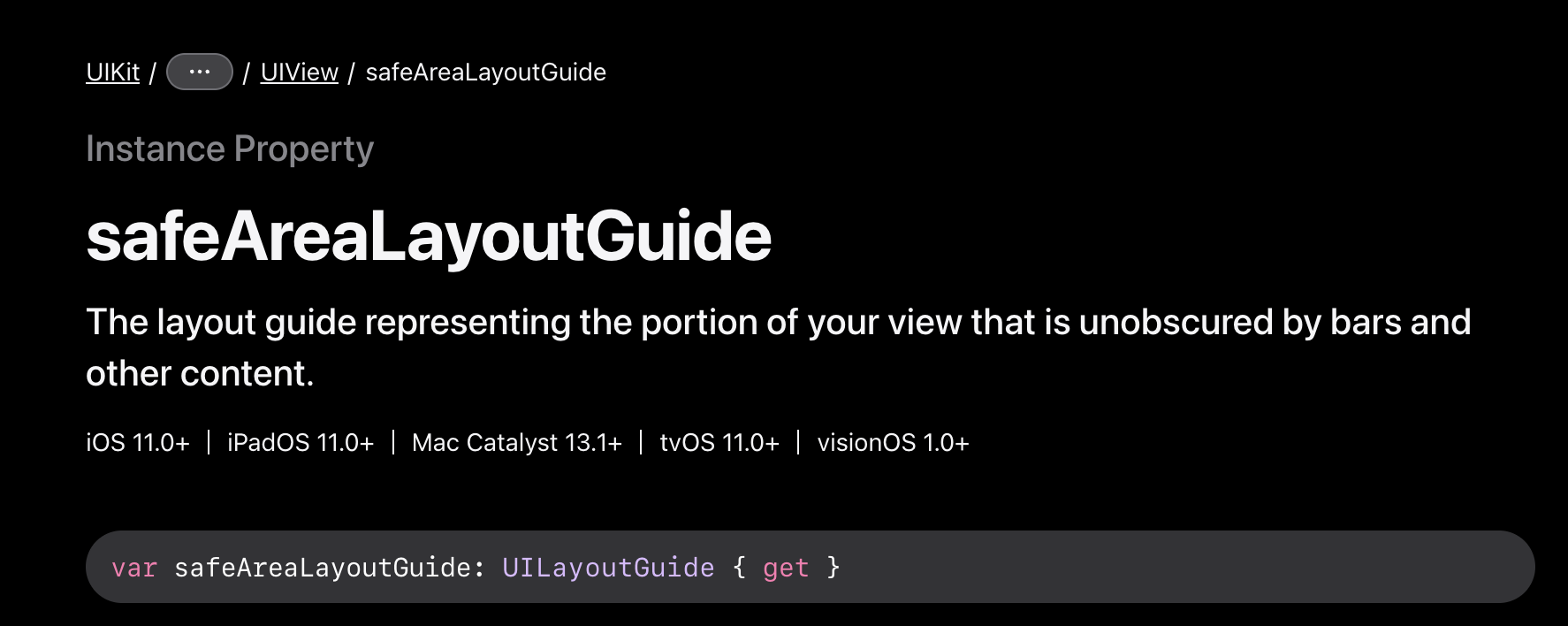 https://developer.apple.com/documentation/uikit/uiview/2891102-safearealayoutguide