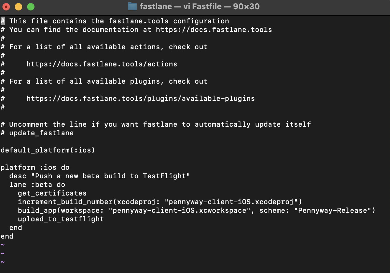 이제 여기서 fastlane 폴더에 있는 Fastfile의 설정을 수정해줘야 한다.