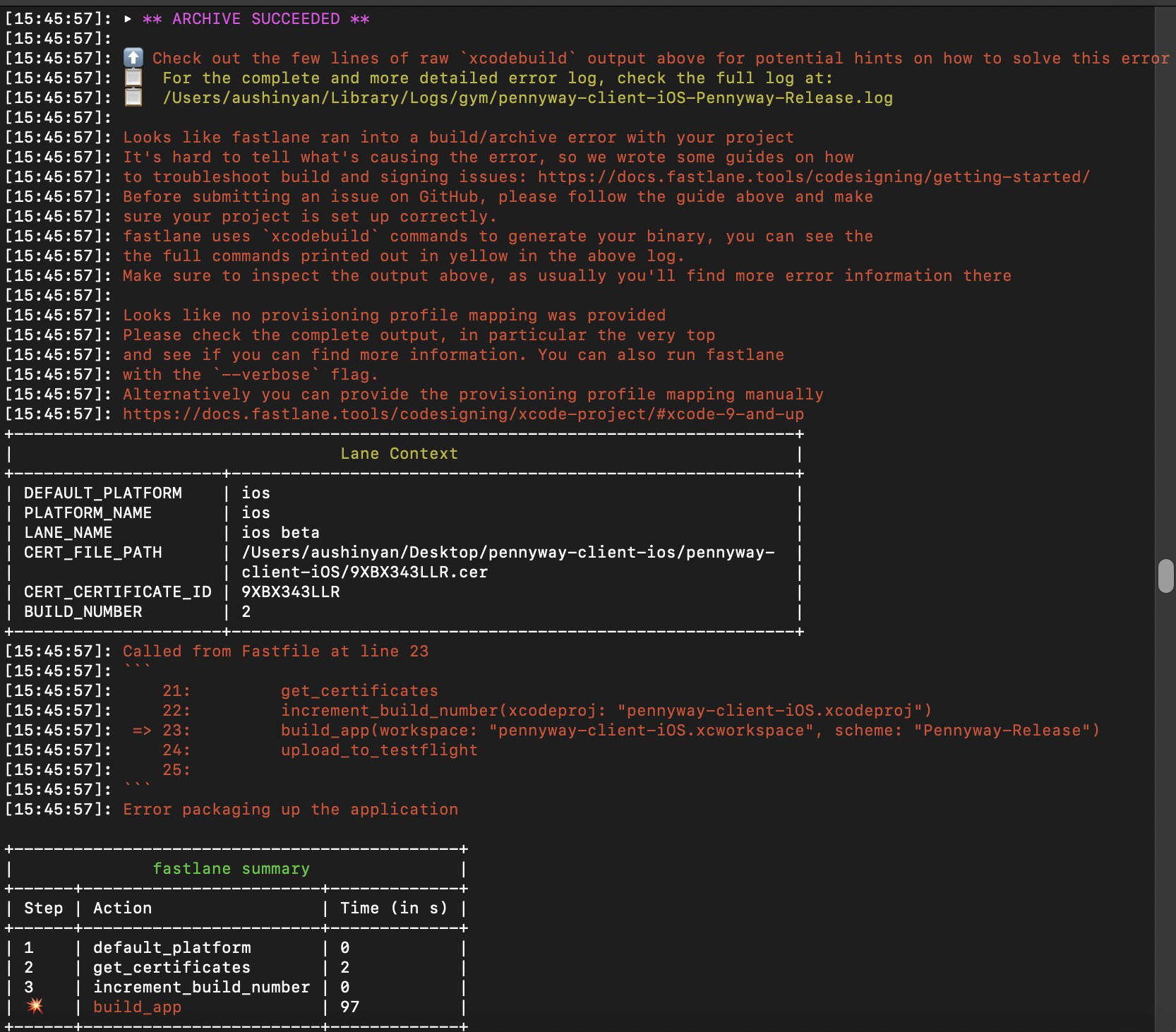 fastlane beta 명령어를 입력해 주고,, 나니 이런 오류가 발생했다.