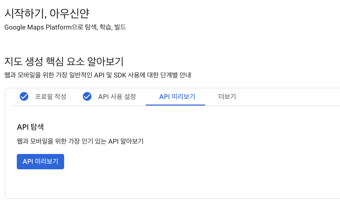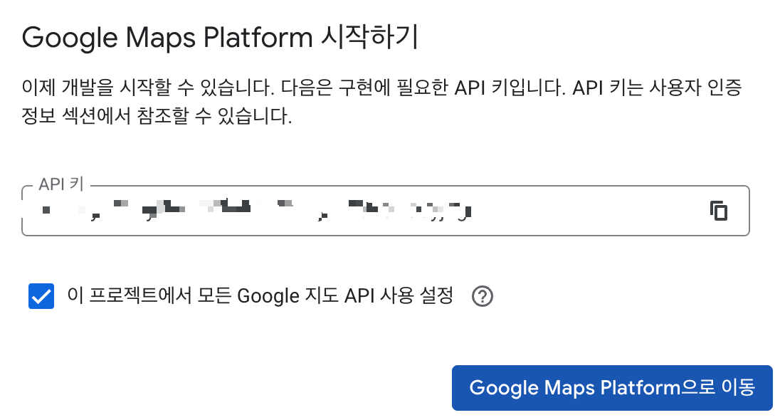 메모장에 키 코드를 복붙 해놓고 google maps platform으로 이동을 눌러주자.
